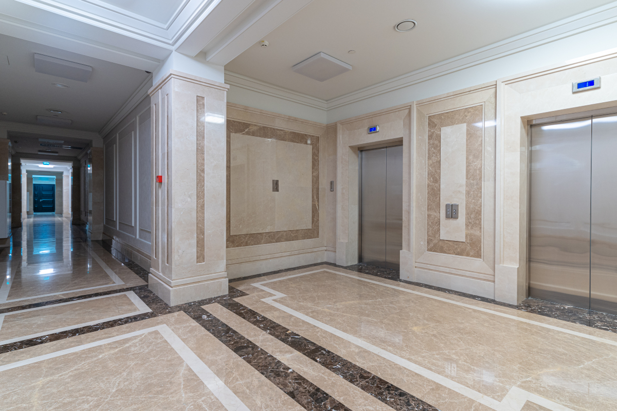 Первый этаж занимает лобби с охраной и круглосуточным консьерж-сервисом. Жильцы могут воспользоваться услугами сервиса отеля Four Seasons — заниматься спортом в первоклассном фитнес-зале с бассейном, проводить важные мероприятия в конференц-залах, обедать в гастрономических ресторанах и барах или расслабиться в салоне красоты. Предусмотрен четырехуровневый подземный паркинг.