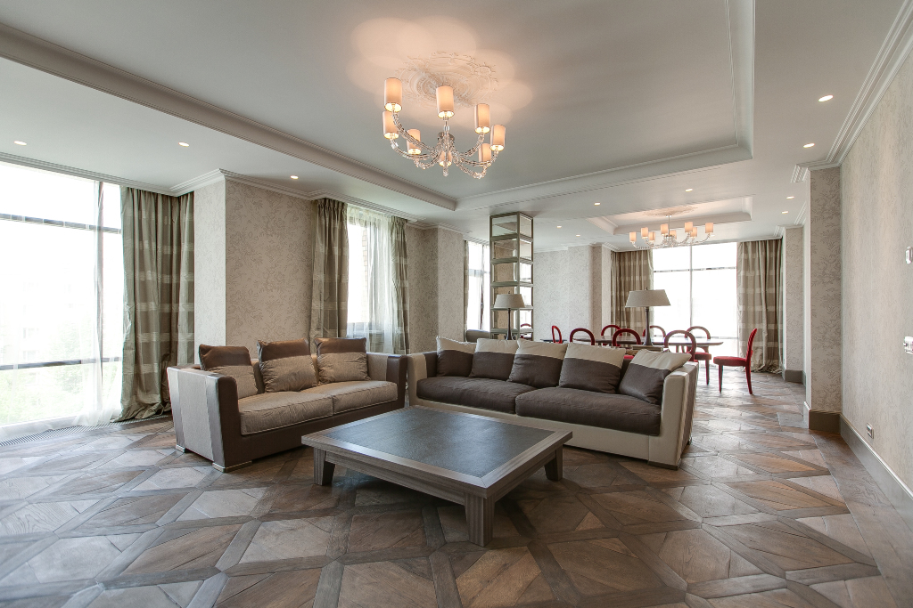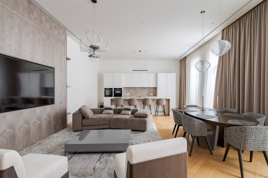 Купить апартаменты в ЖК Гостиница Москва возможно с 5-го по 7-й этажи от 80 до 728 кв.м с готовой отделкой или свободной планировки. Большие окна открывают жильцам захватывающую панораму на все знаковые достопримечательности Москвы как на ладони — Красную площадь, Александровский сад и Храм Христа Спасителя. Во всех апартаментах предусмотрены балконы или просторные террасы, где резиденты оборудовали уютные лаунж-зоны с тенистыми тентами и мягкой садовой мебелью.